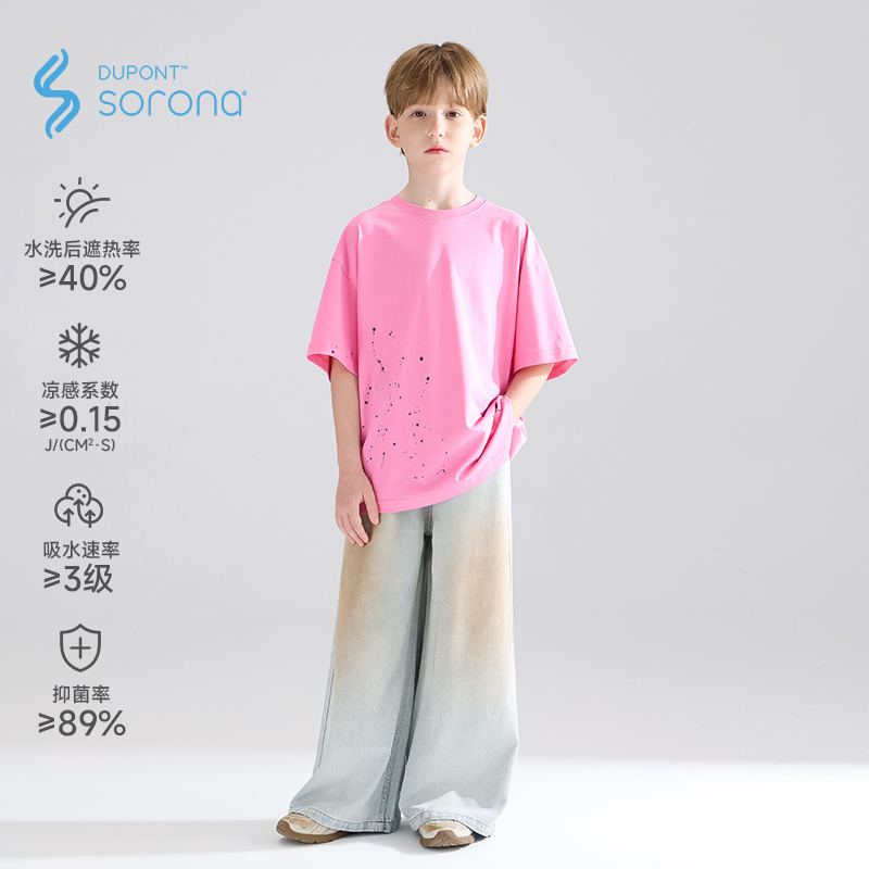 涂鸦烫钻百搭潮牌短袖 sorona光盾凉感 T恤男童夏新 闪耀街头