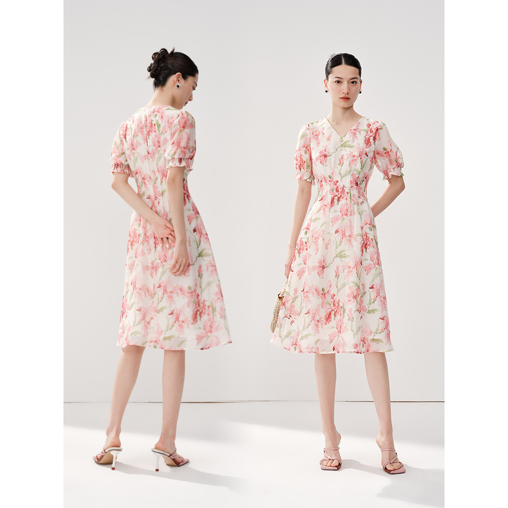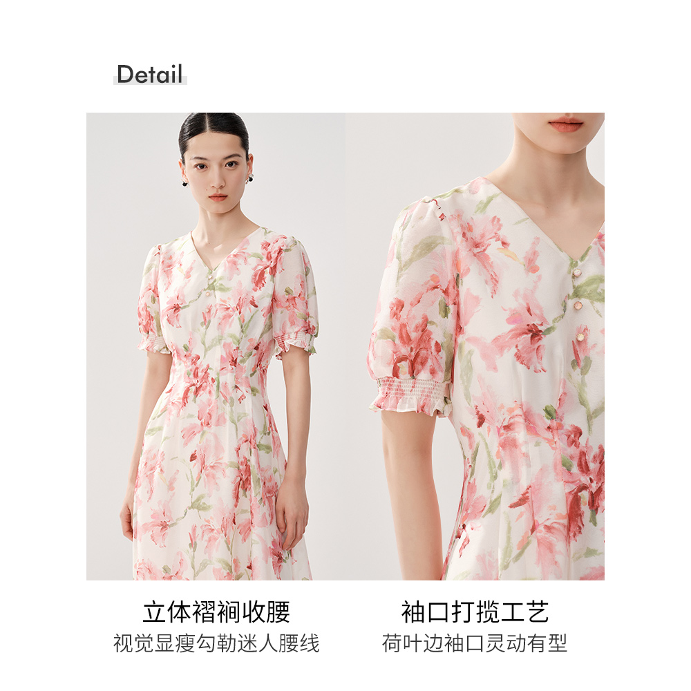 2025年杭州大牌真丝连衣裙女夏季 高端妈妈桑蚕丝显瘦碎花裙子 新款