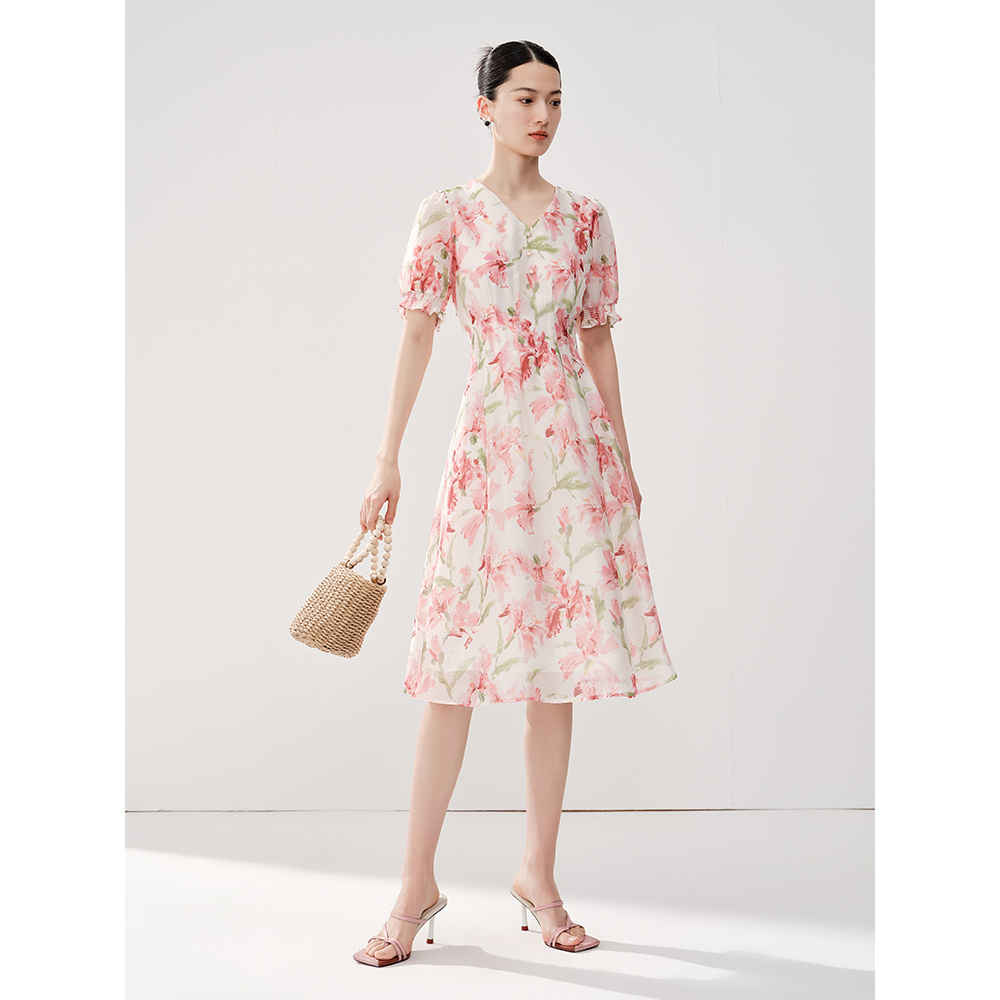 新款 连衣裙女2025年夏季 休闲碎花a字裙子 气质宽松显瘦泡泡袖 时尚