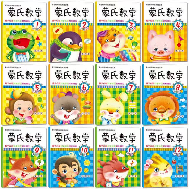 蒙氏数学全12册幼儿园教材小中大班启蒙数学教具儿童益智书加减法练习册潜能开发阶梯训练蒙台梭利早教书学前课本3 6岁数学启蒙书