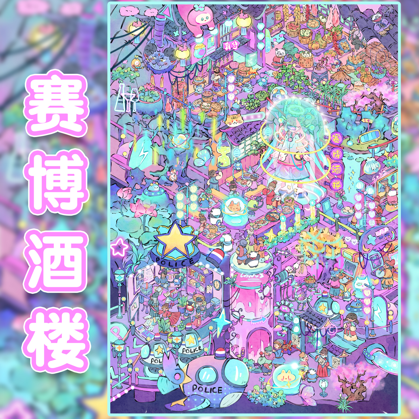 一方酒楼造景贴纸雀麦16.0麦麦小吃街赛博酒楼古风大号恐怖微缩场景3D立体小屋贴画手帐账diy手工玩具女孩
