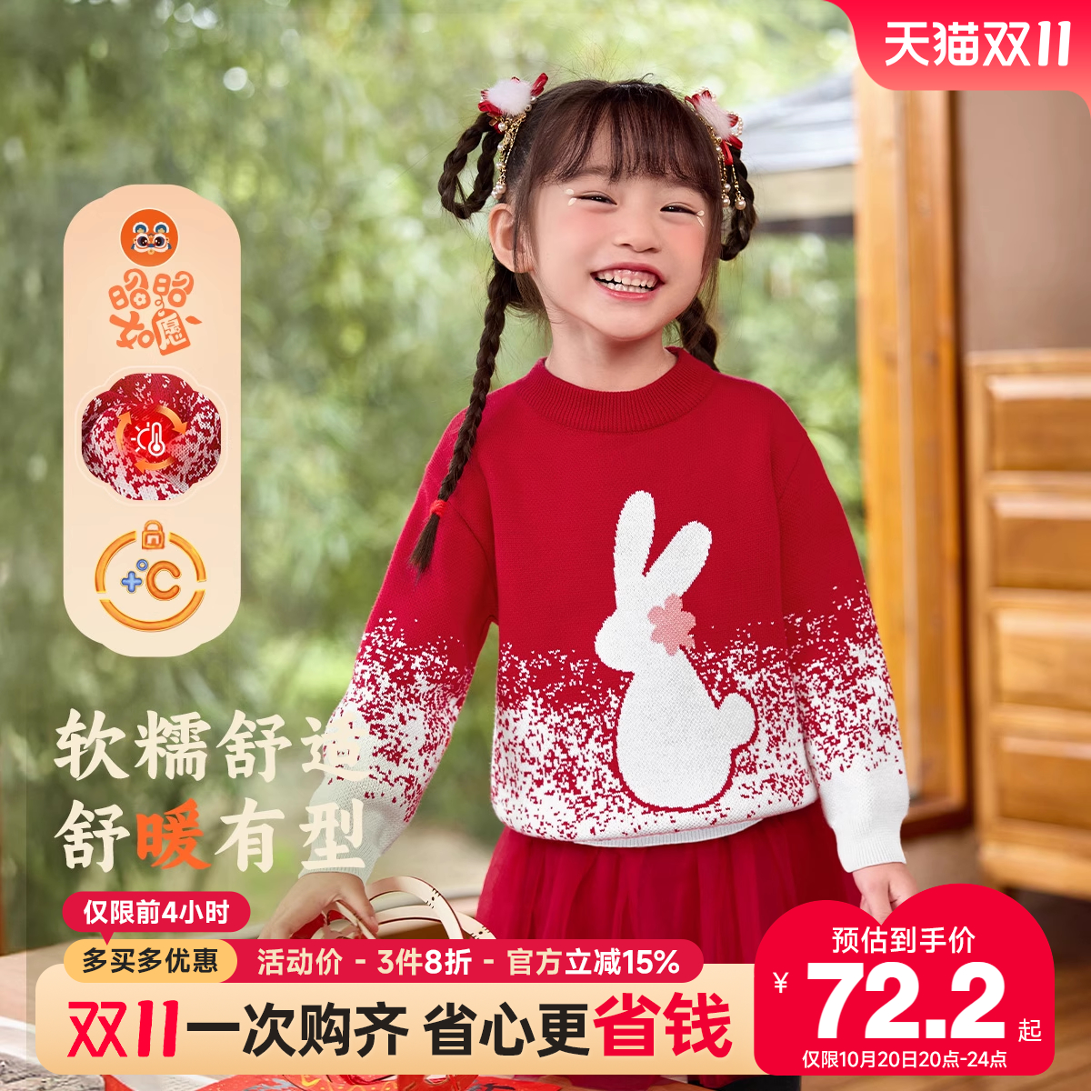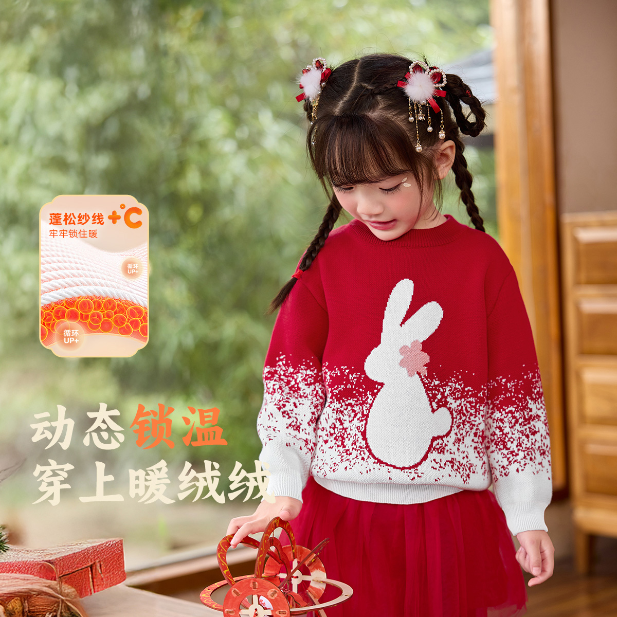 婴儿拜年服儿童过年服红色冬装 婴儿针织衫 冬季 女童毛衣纯棉新年款
