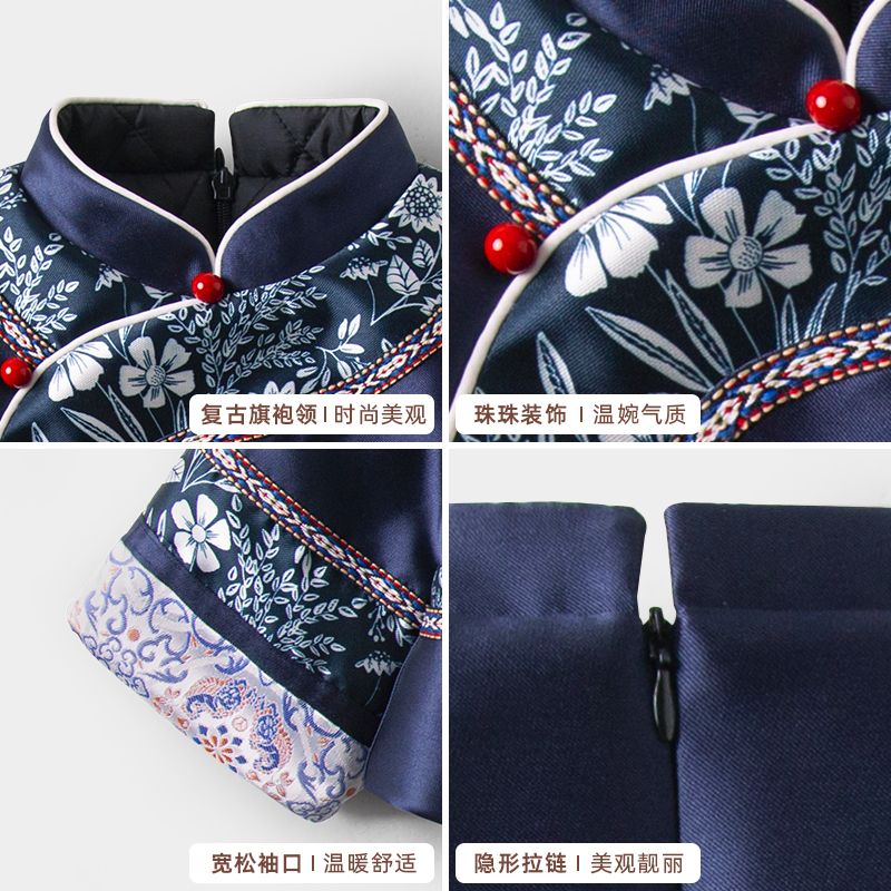 中国风夹棉 宝宝拜年服唐装 木本尚女童冬装 汉服旗袍两件套2025新款