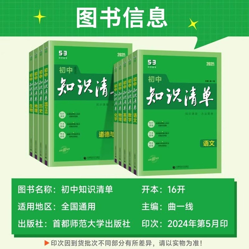 2024版 初中知识清单语文数学英语物理化学生物政治历史地理9本全套初中基础知识大全教辅书初一二三中考总复习预习资料工具书五三