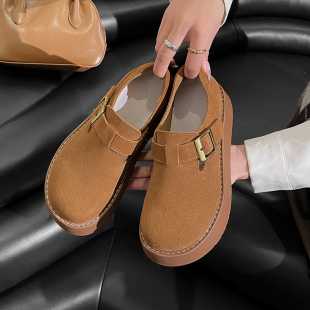 雪地靴博肯鞋 加绒厚底休闲单鞋 女2025秋冬新款 增高5CM真皮勃肯鞋