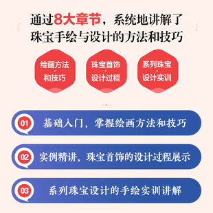珠宝设计手绘表现技法与实战 基础进阶写实 首饰设计师 视频教学 技巧 效果图绘画 2册 制作流程 珠宝手绘设计原理与实例解析