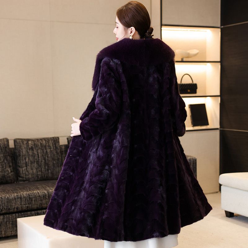 环保皮草大毛领皮草 仿白狐狸毛双间色立领款 ESEK皮草女款 2025新款