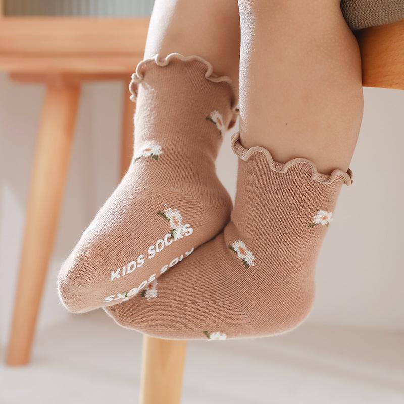 木耳边女童袜子婴儿宝宝防滑地板袜儿童棉袜松口童袜X1