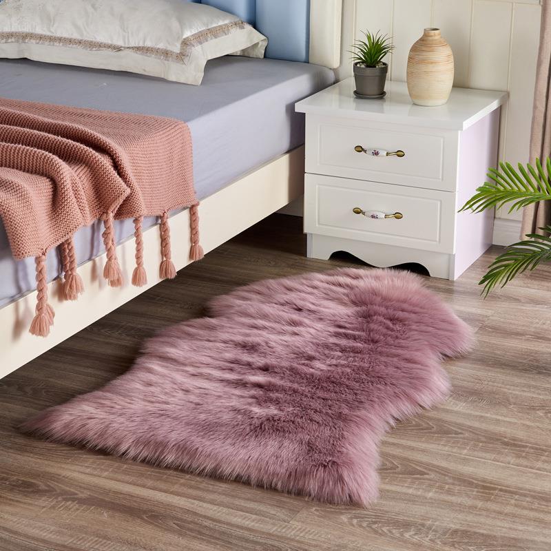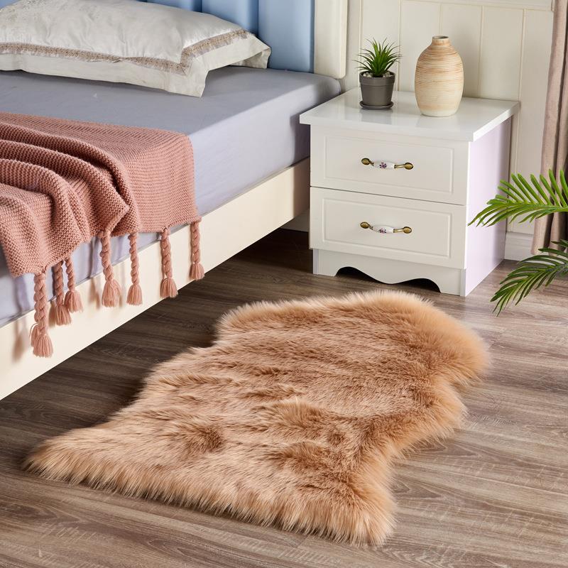 现货咖啡色长毛绒卧室床边地毯 饰皮形定制 不规则色羊毛地垫装