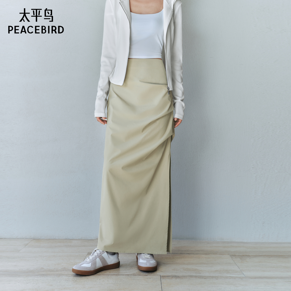 森马半身裙女磨毛纯色A字长裙简约百搭秋季 纯棉宽松伞裙显瘦潮流
