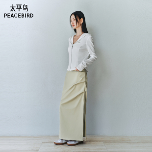 佐丹奴中长花苞裙女秋冬新款 磨毛破骨松紧腰松弛感半身裙13465866