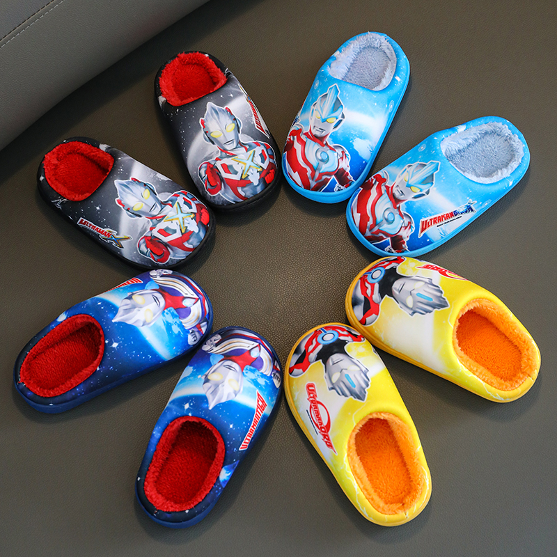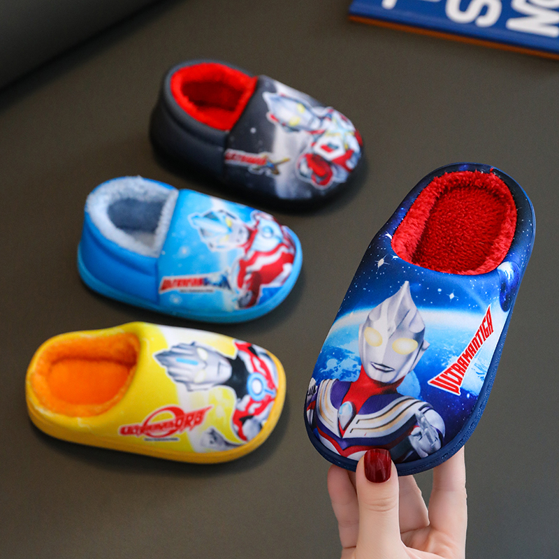 家居男童棉鞋 室内卡通小男孩秋冬季 男宝2025新款 奥特曼儿童棉拖鞋