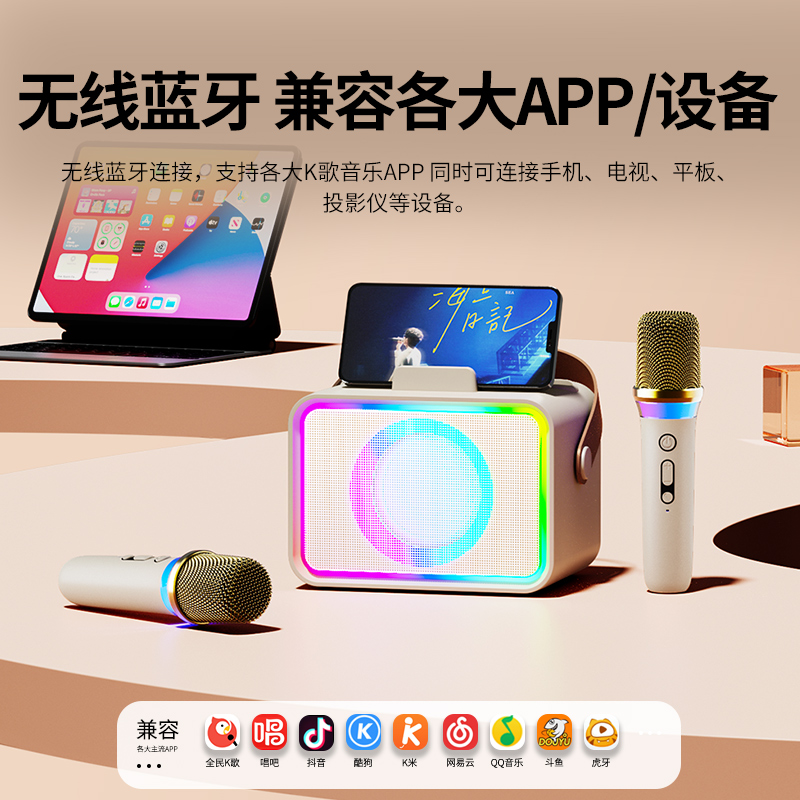 索爱话筒音响一体麦克风家用k歌无线蓝牙儿童唱歌音箱手机家庭ktv