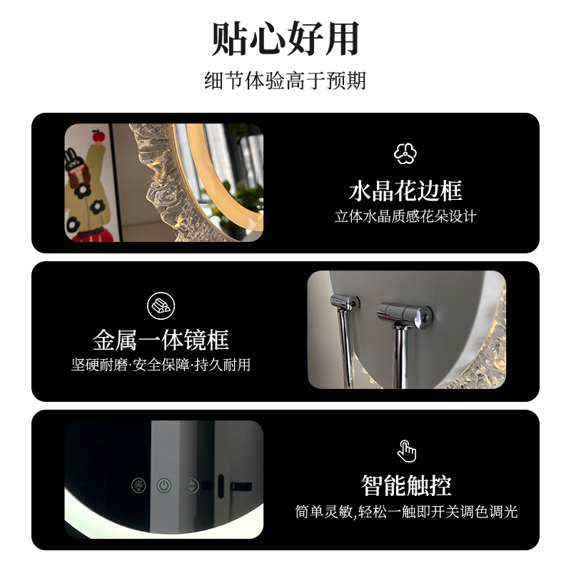 MUID大圆镜台式 带灯智能高清梳妆镜桌面补光led美妆化妆镜子网红