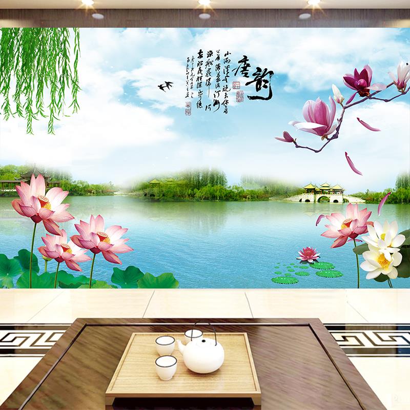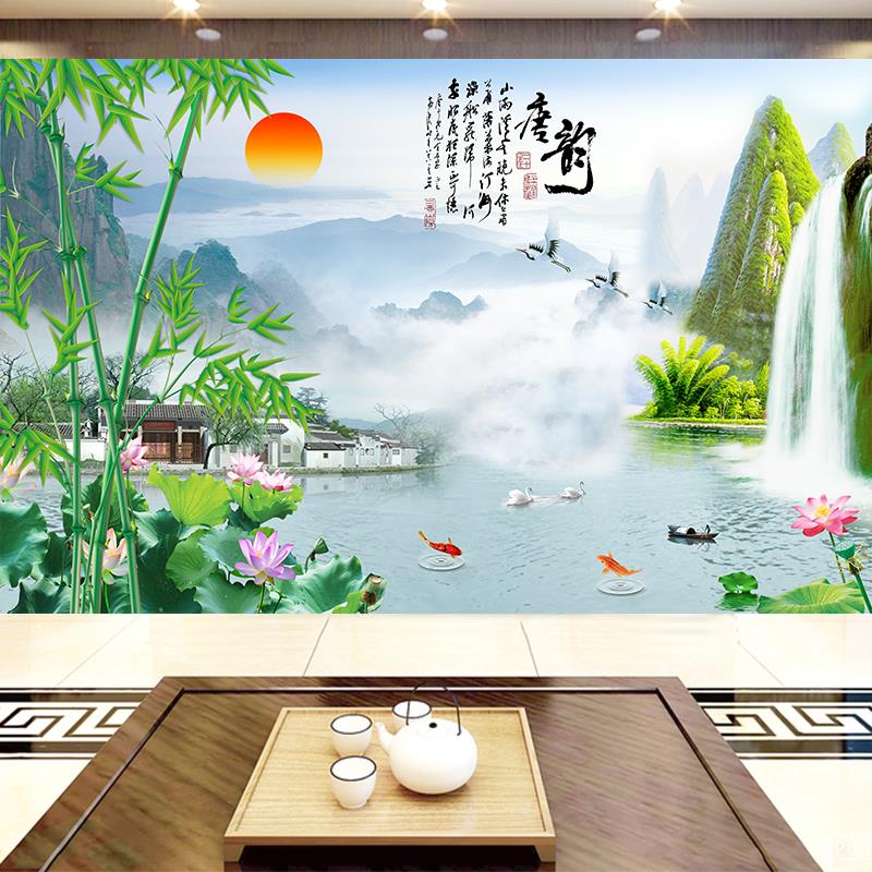 唐韵中式 3d立体山水风景画5d电视背景墙壁布8d客厅墙贴画定制壁画