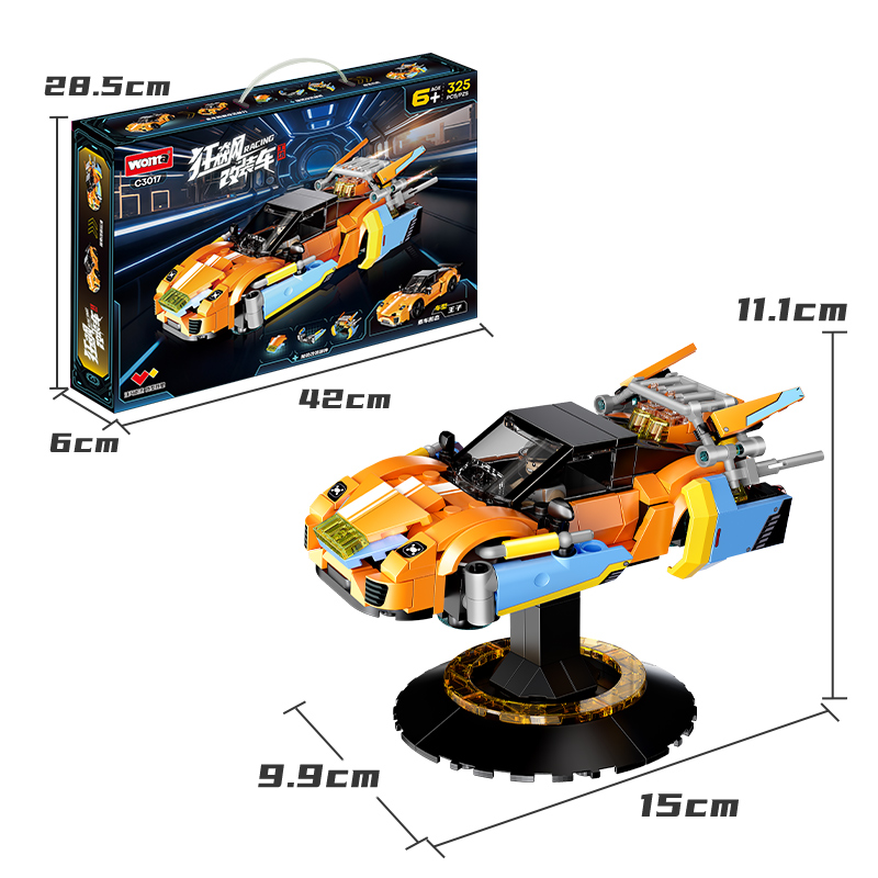 沃马积木车拼装 模型跑车男孩玩具汽车礼物赛车儿童益智小汽车拼图
