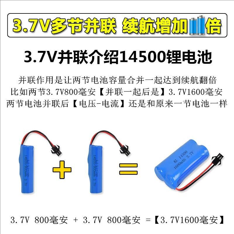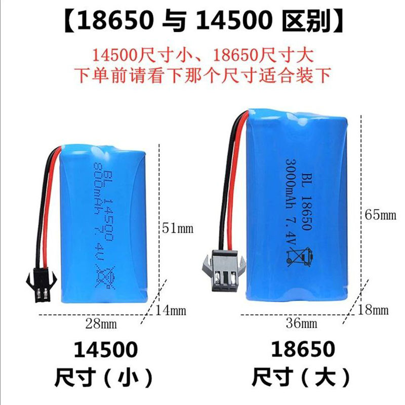 14500锂电池儿童遥控玩具车电池3.7v 7.4v通用18650充电电池充电线大容量变形机器人越野车翻斗车机器狗电池