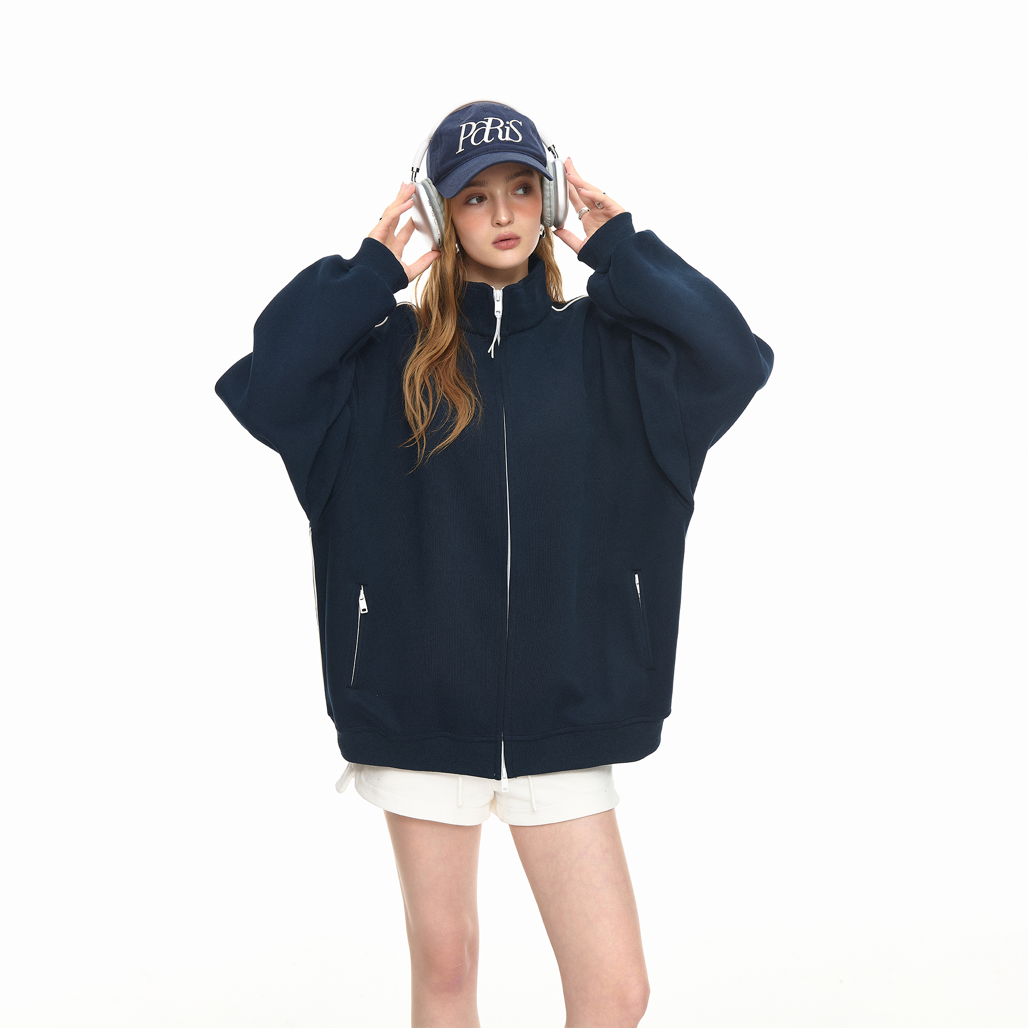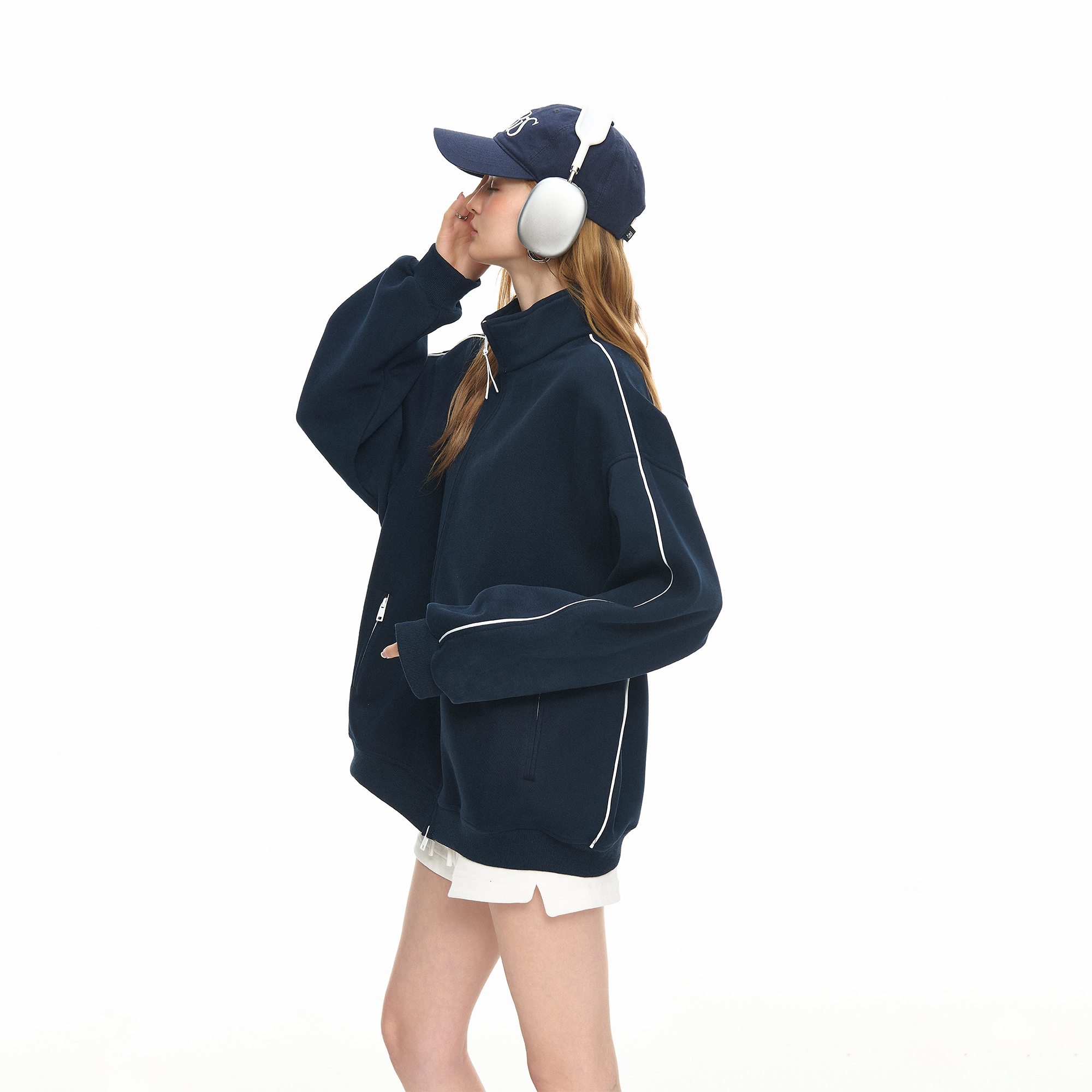 运动休闲情侣款 立领卫衣女春秋新款 外套上衣 复古拼接拉链开衫 美式