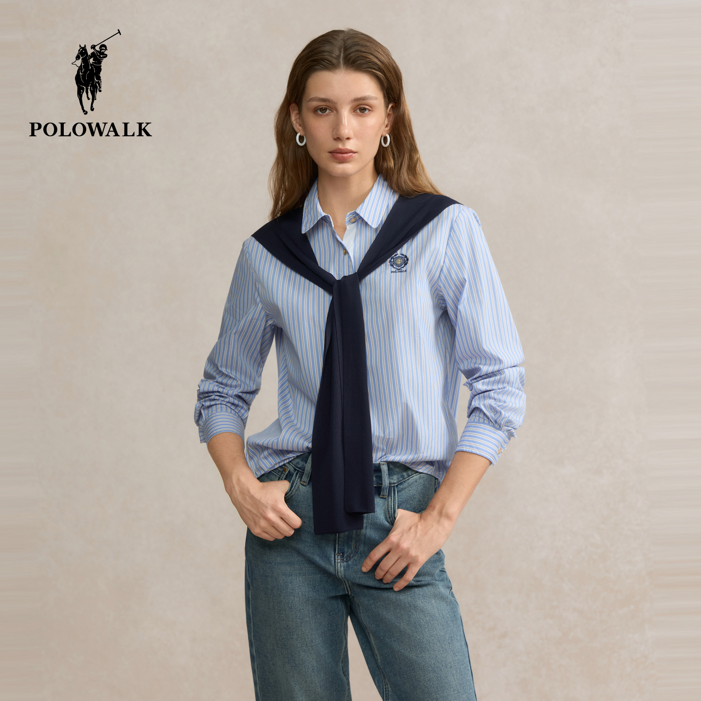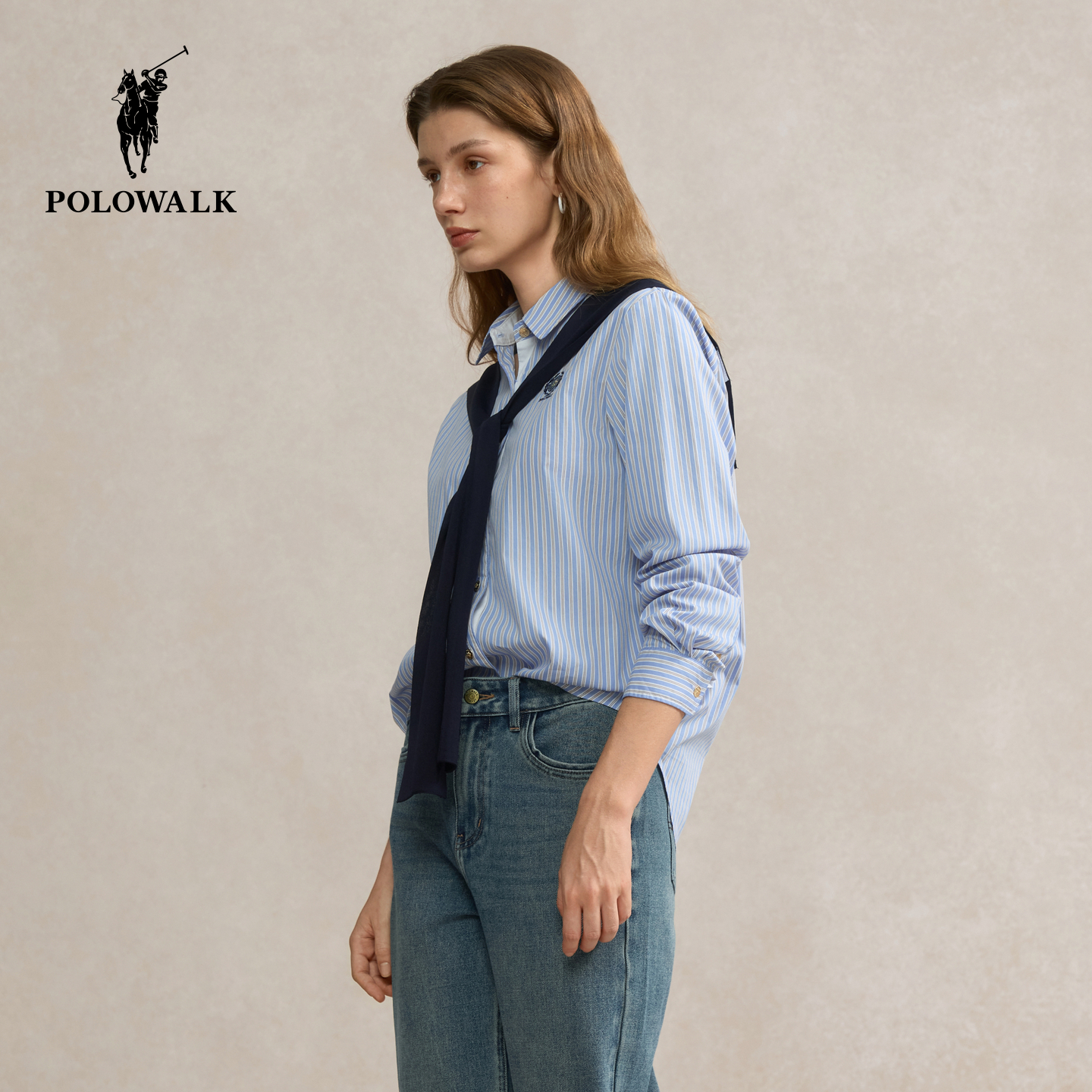 优雅长袖 通勤翻领上衣开衫 休闲衬衣 秋冬新款 POLOWALK女士条纹衬衫