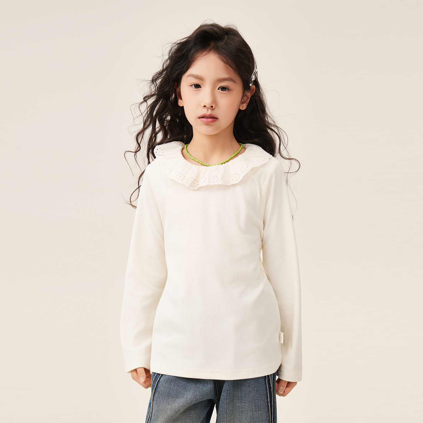 儿童洋气内搭上衣中大童t恤 新款 皇室童缘女童花边打底衫 2025秋季
