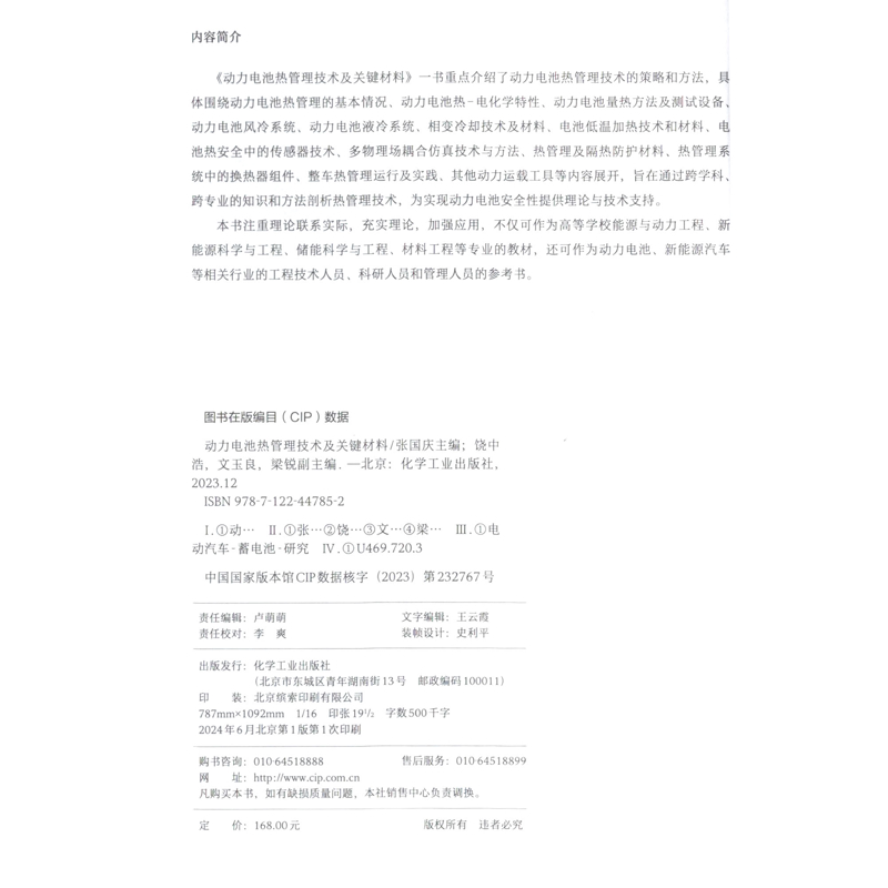 文玉良 饶中浩 梁锐 副主编能源与动力工程化学工业出版 动力电池热管理技术及关键材料张国庆 社新华书店正版 主编