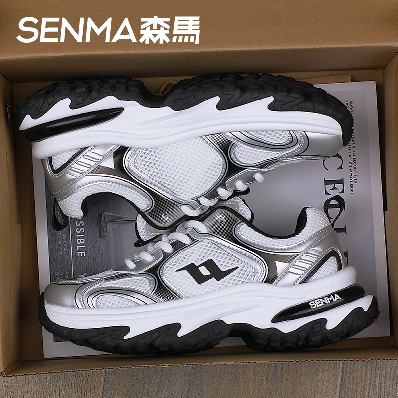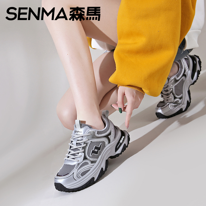 2025秋季 骆驼女鞋 新款 休闲透气老爹鞋 女 厚底增高银色运动鞋 银熠