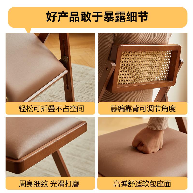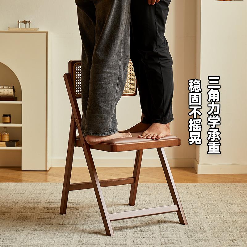 藤编折叠椅子实木餐椅家用网红侘寂风日式 休闲原木风靠背吃饭椅