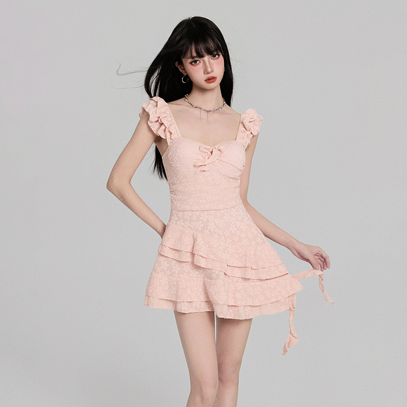pulassi竞速泳衣女款 泡温泉连体专业游泳衣粉珍珠 高级感2025新款