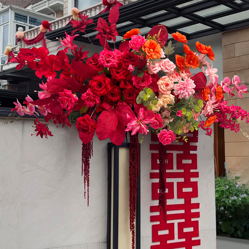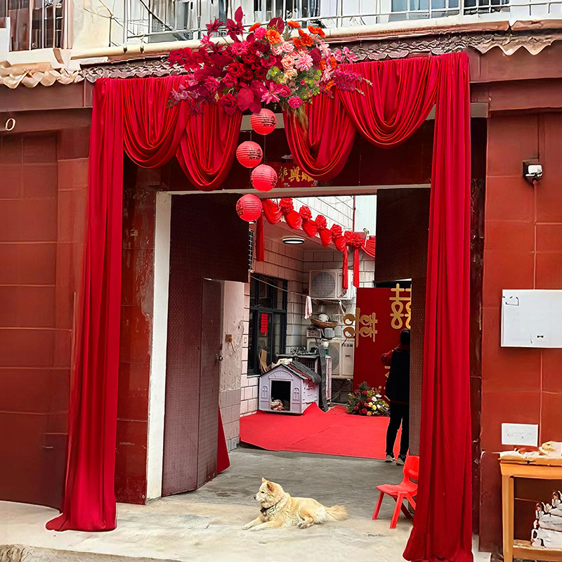农村院子自建房婚礼布置结婚大门口场景装 饰庭院灯笼瀑布挂饰拉花