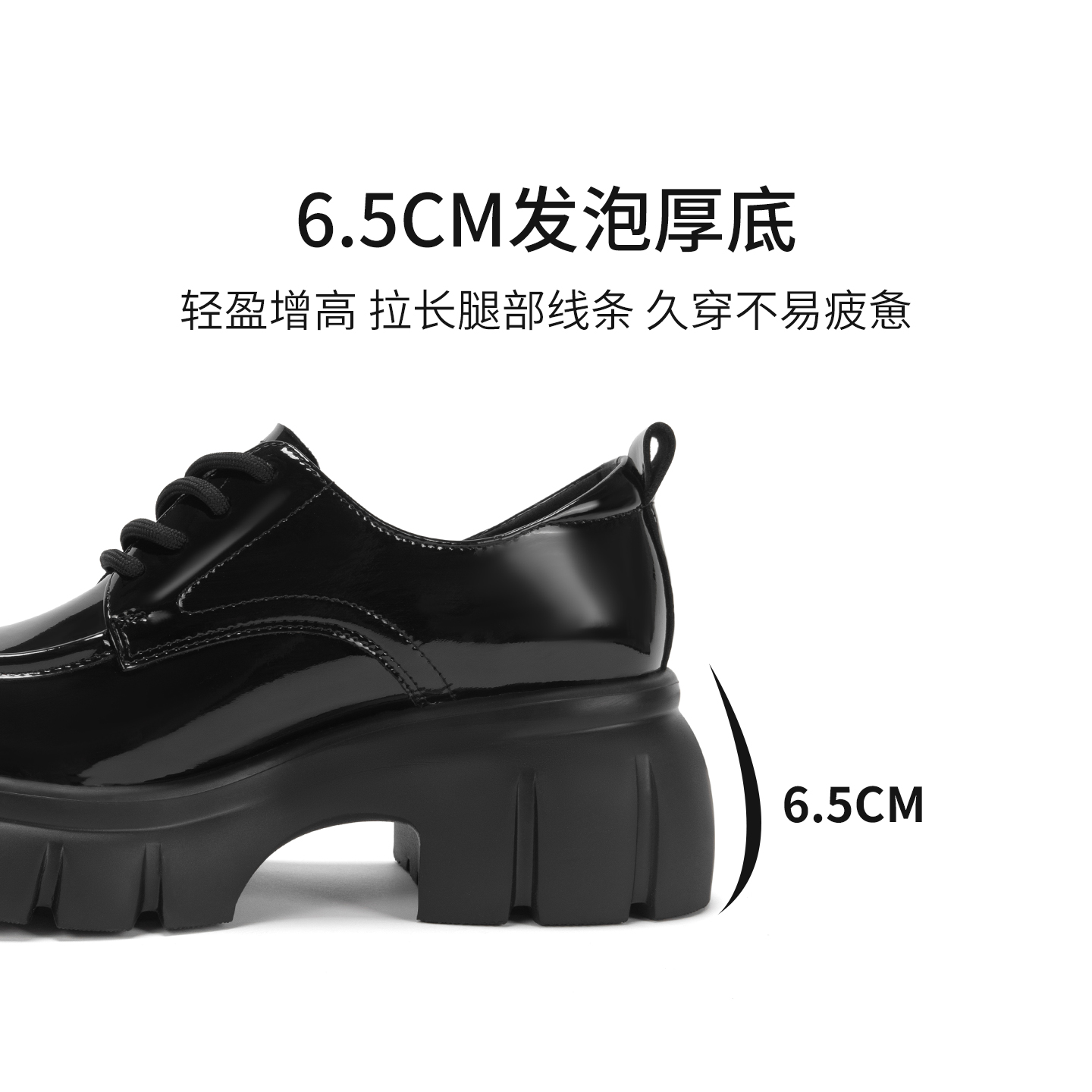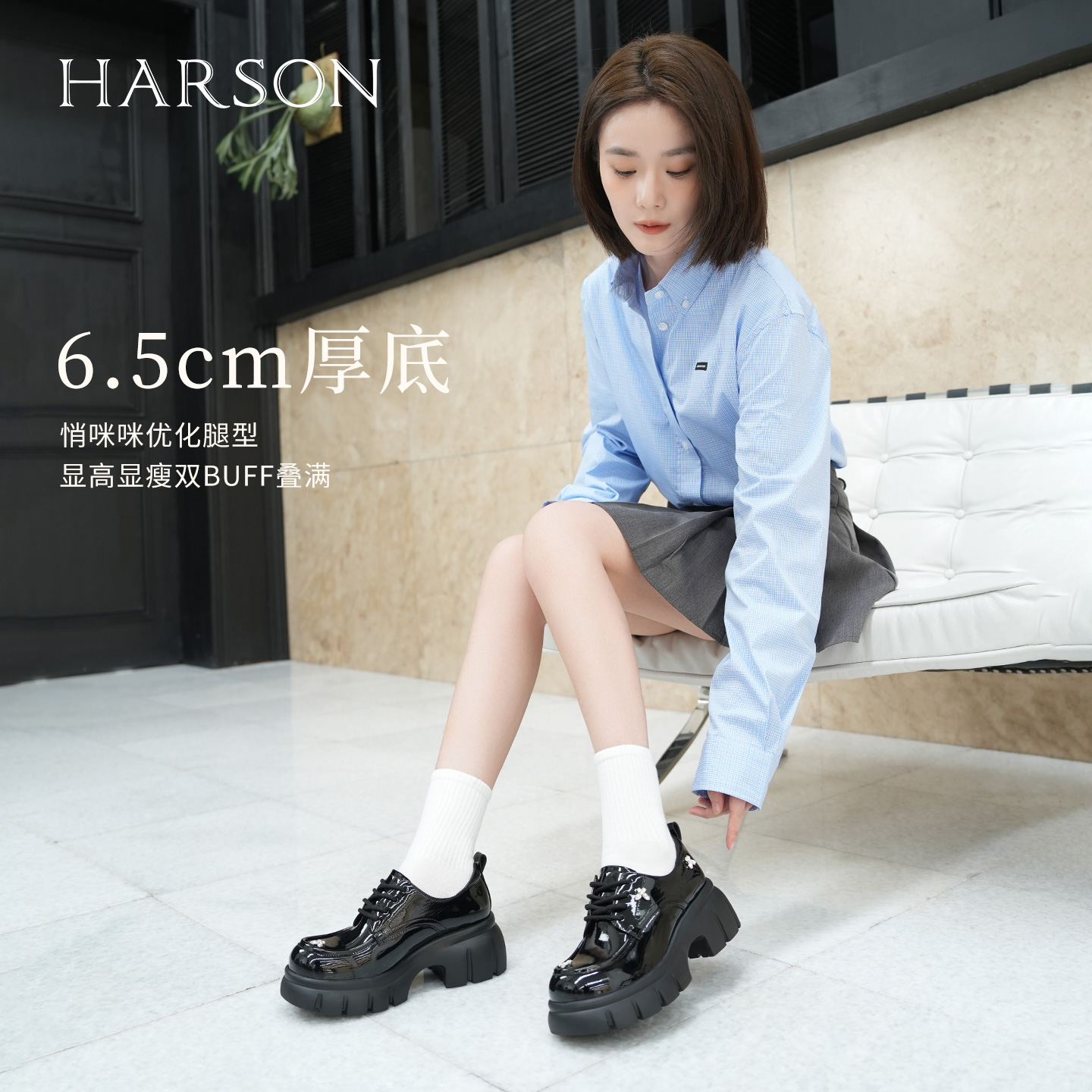 绑带厚底增高蝴蝶黑色皮鞋 哈森 25秋新款 爵士乐福鞋 HARSON