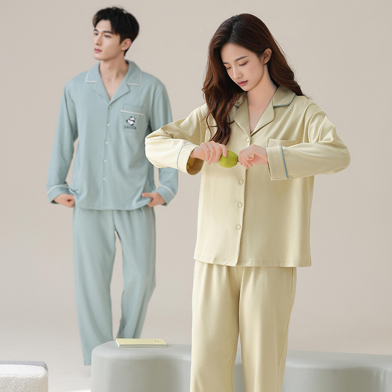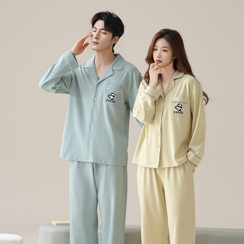 有内情侣睡衣女纯棉抗菌防螨2025新秋冬熊猫A类男长袖 家居服套装