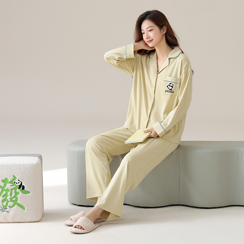 长袖 简约舒适家居服套装 长裤 夏季 可外穿 2025新款 纯棉睡衣女春秋季