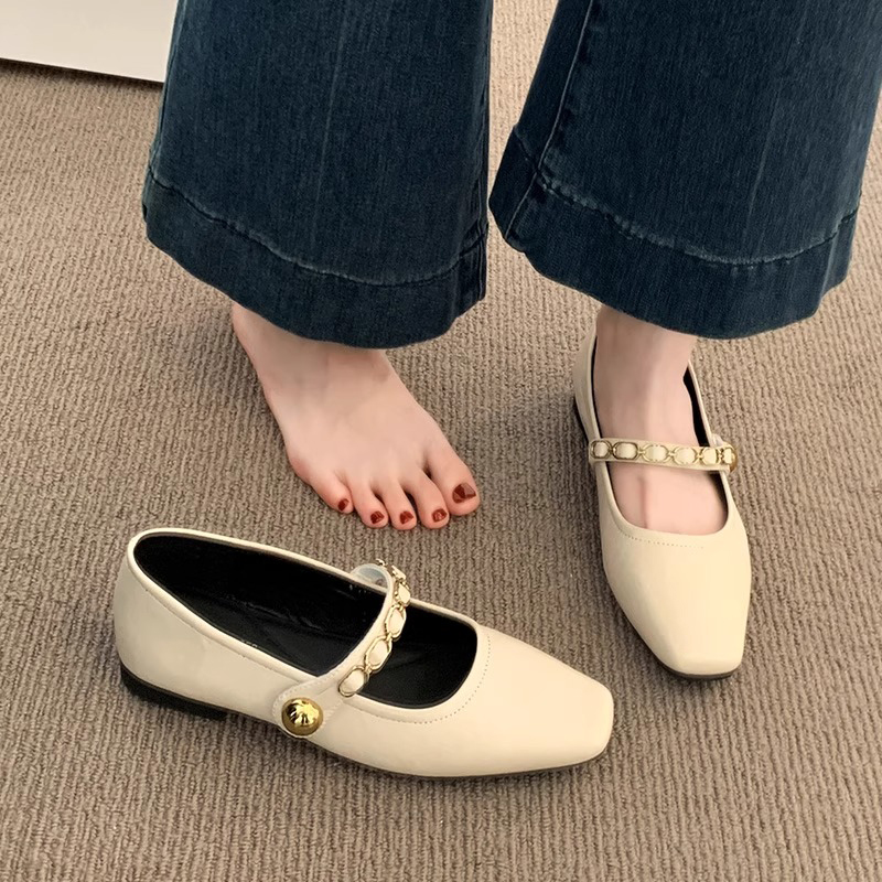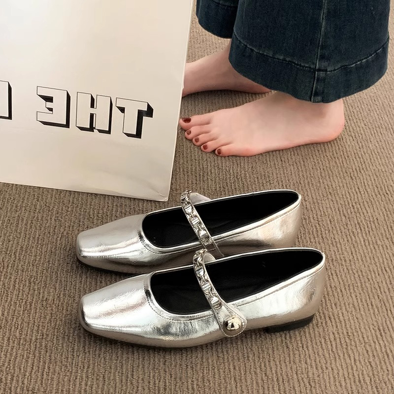银色低跟玛丽珍小皮鞋 法式 新款 女2025秋季 绝美气质配裙子尖头单鞋