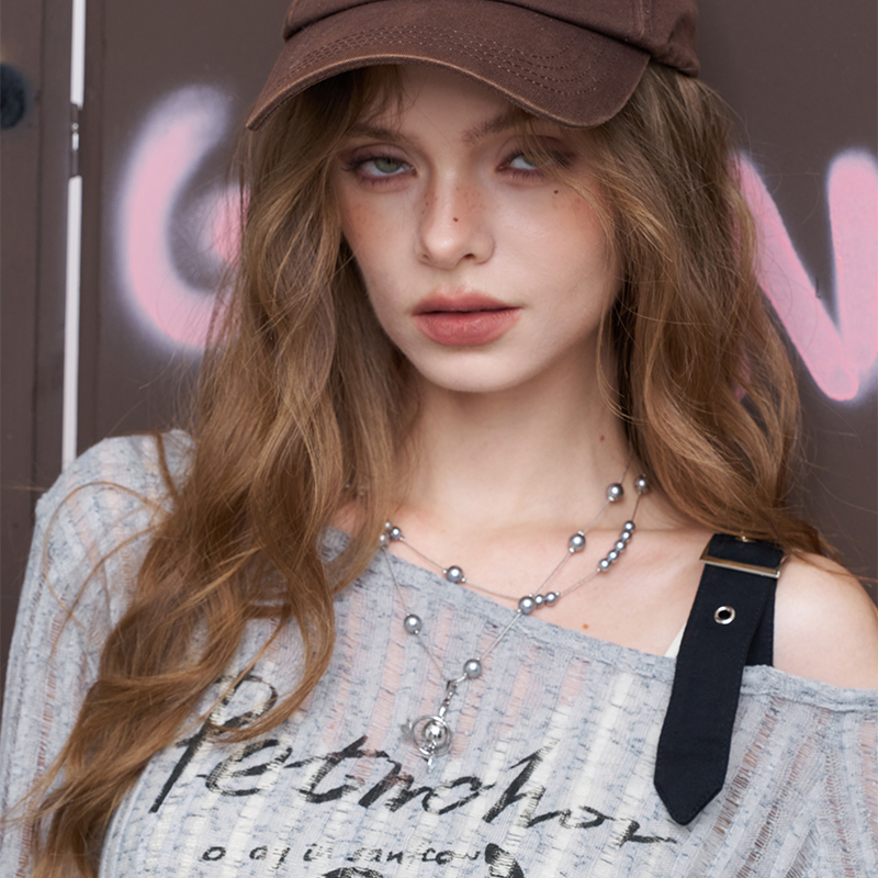 秋季 女2025年新款 穿搭甜酷 口袋灰色蝴蝶印花露肩镂空针织衫 妖精