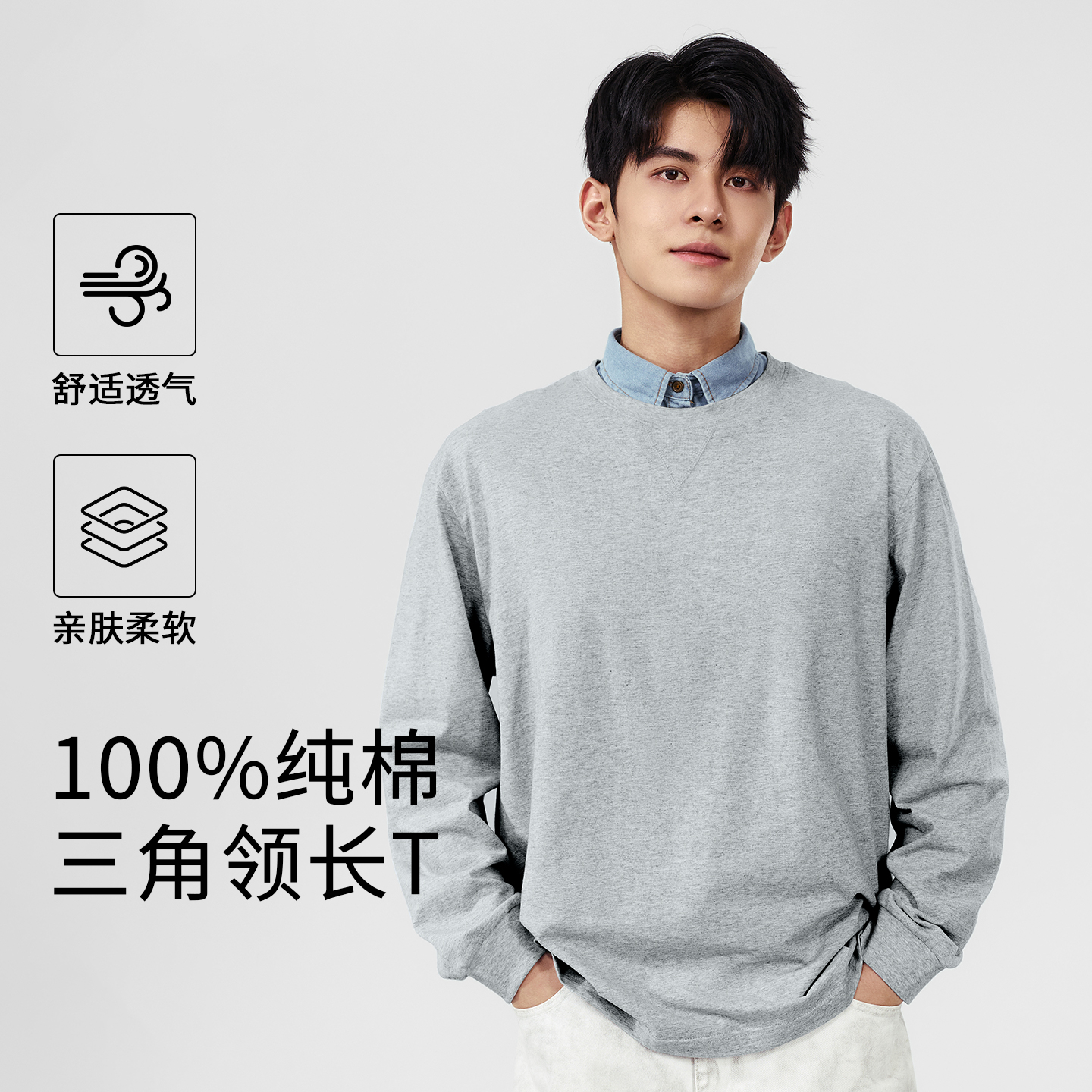 宽松打底衫 班尼路S&K三角领纯棉长袖 青少年美式 新款 男A t恤男秋季