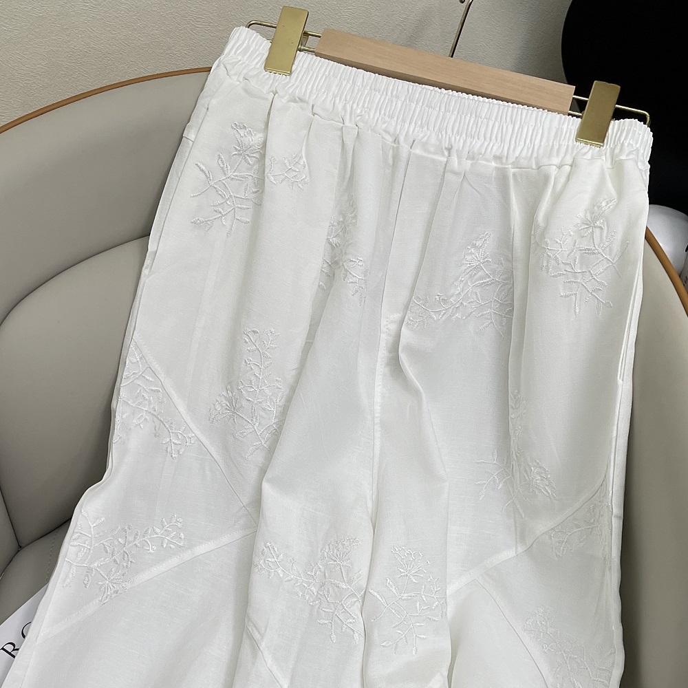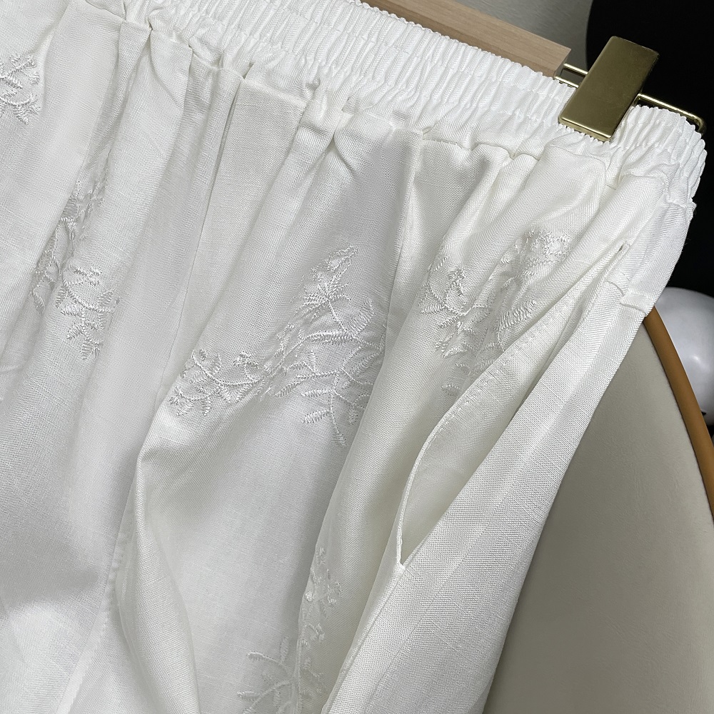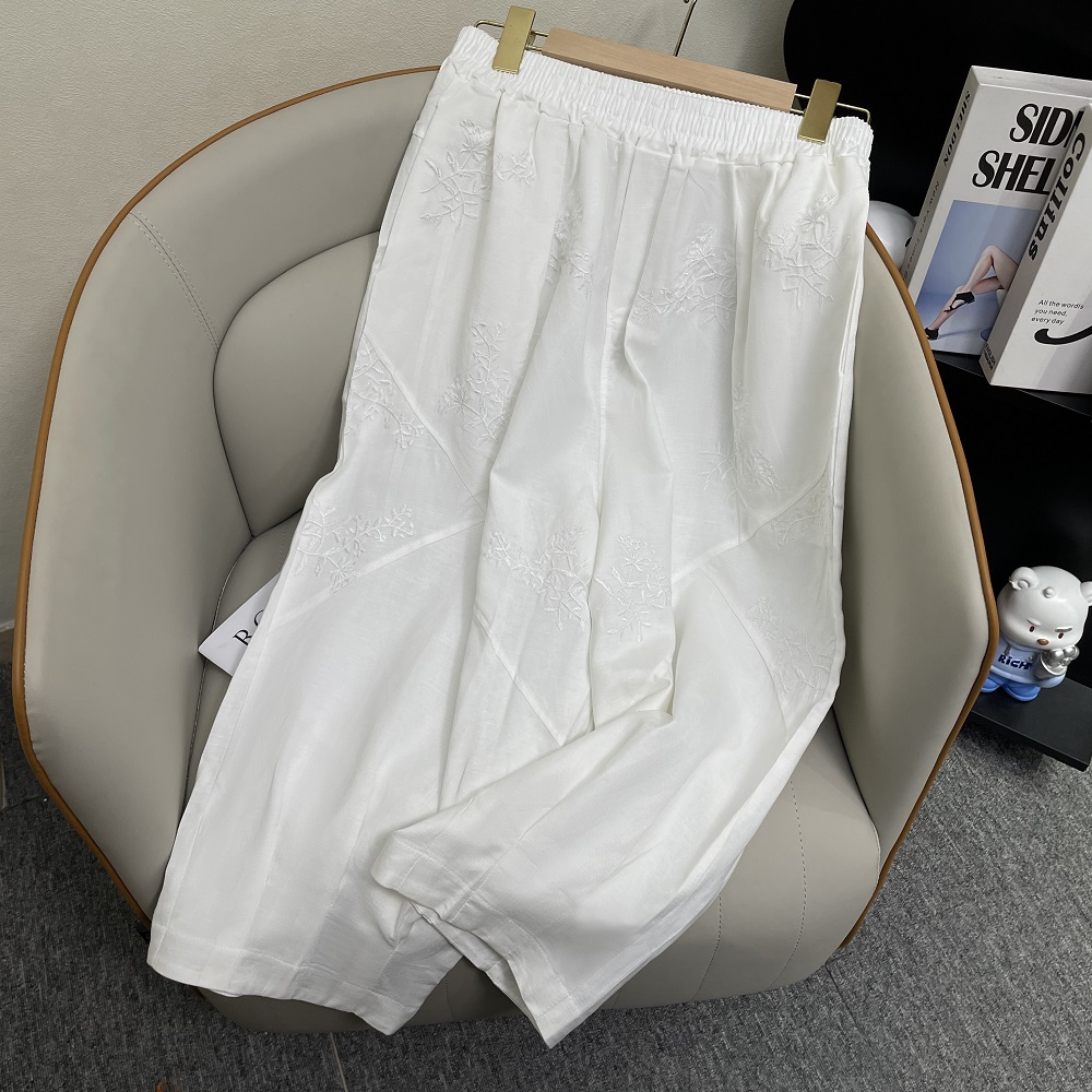 九分哈伦裤 Fjwldy新款 薄棉麻刺绣大码 女夏季 高腰宽松显瘦休闲裤