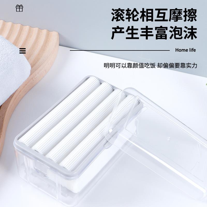 婴儿洗衣香皂盒宝宝儿童多功能免手搓滚轮式 肥皂起泡器沥水收纳盒