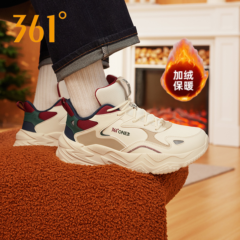 防泼水情侣休闲跑步保暖棉鞋 冬季 子女 男老爹鞋 361加绒可颂运动鞋