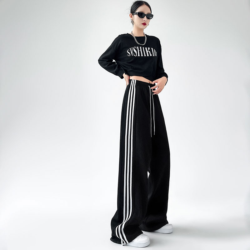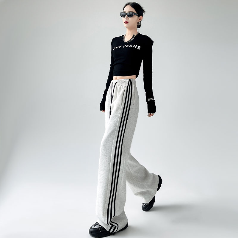 阔腿裤 三条杠运动裤 加绒加厚美式 高腰休闲直筒冬季 女2025春秋新款