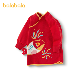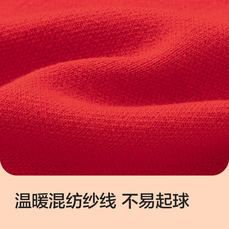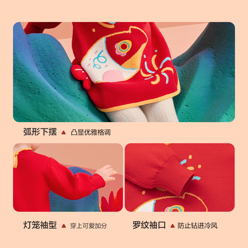 乐町韩系小香风连衣裙中国红毛衣裙木耳边领氛围感新年圣诞连衣裙