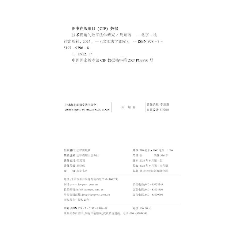 数字法学研究 技术视角 周翔 之江法学文库 社9787519793968 正版 法律出版 2024新书