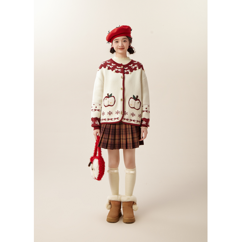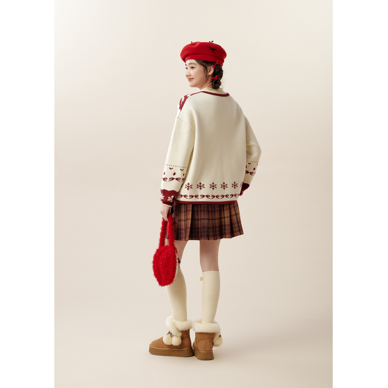 圣诞氛围感小个子叠穿宽松毛衣外套 新款 紫涵圆领针织开衫 女冬季