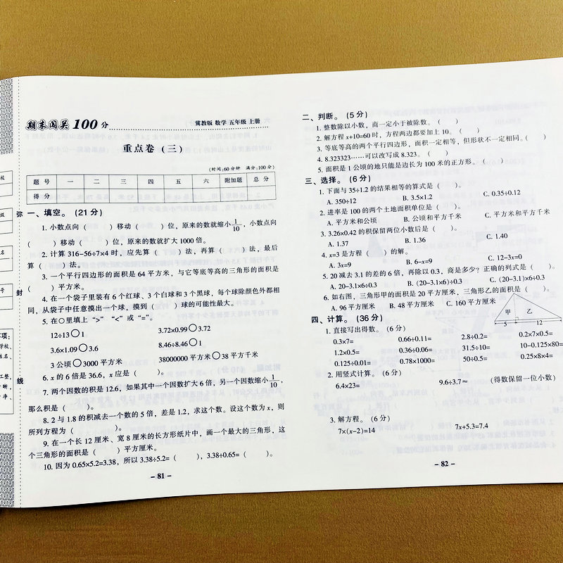卷期中期末复习卷冀教版 5年级上册单元 试卷全真模拟重难点提高卷期末冲刺闯关100分乐双 数学测试卷五年级上册数学试卷冀教版 冀教版