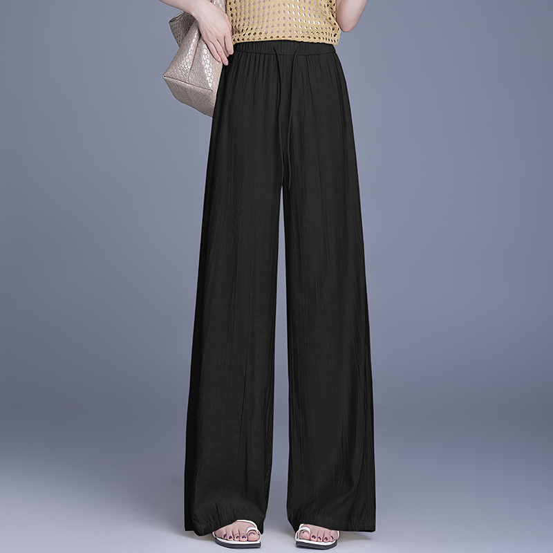 女春秋新款 休闲直筒慵懒松弛感裤 高腰垂感窄版 裤 子 西装 黑色阔腿裤