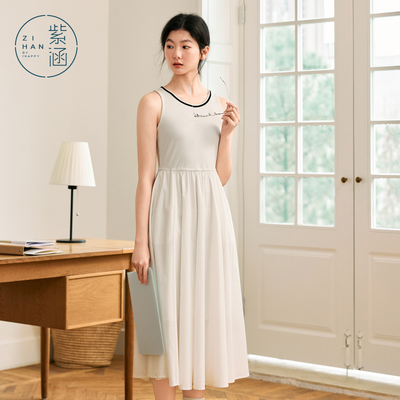 a字伞裙 简约通勤拼接中长款 紫涵吊带背心连衣裙女2025年夏季 新款