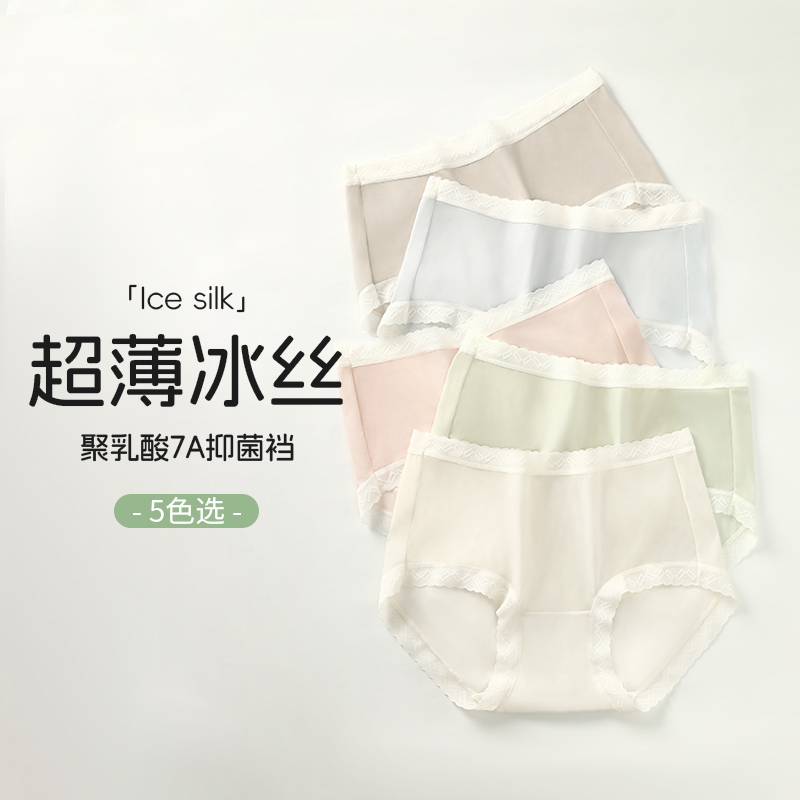 凉感超薄冰丝透气聚乳酸抑菌底裆中腰高弹三角裤 茵可可内裤 女夏季