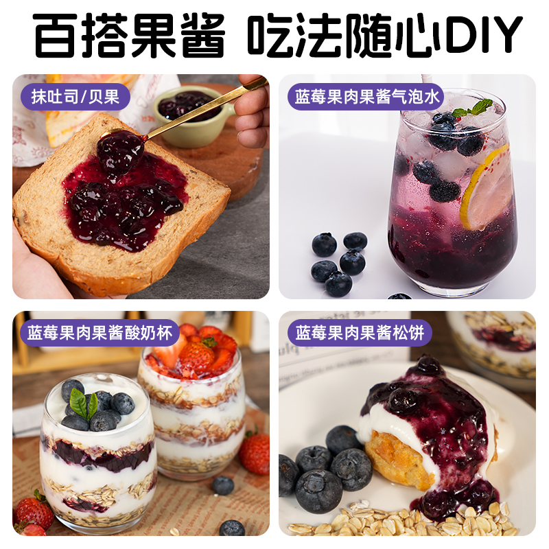 百伯利蓝莓酱90%果肉果酱烘焙饮品早餐面包伴侣儿童草莓果酱