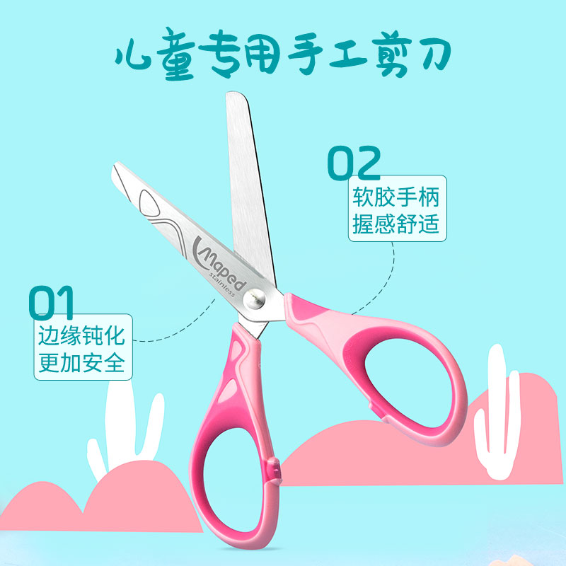 法国MAPED马培德软柄剪刀马卡龙色可爱少女心不锈钢办公美工幼儿园儿童手工剪刀高颜值剪刀学生中号旗舰店