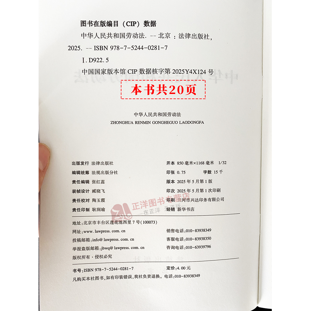 2025新版 法律出版 中华人民共和国劳动法 中国劳动法法律单行本法规法条文 社9787524402817 32开本 正版