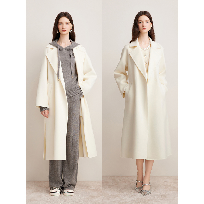 双面呢大衣浴袍式 Goodland美地2024冬新款 莱赛尔 外套 绵羊毛